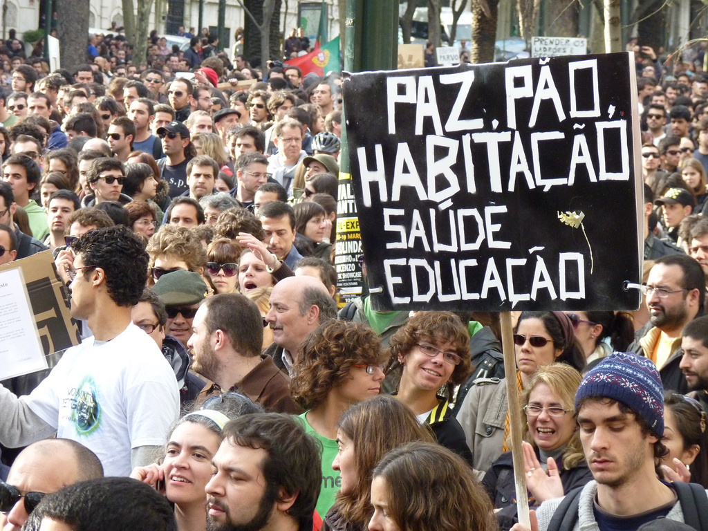 Durante o processo revolucionário de 74-75, os trabalhadores e estudantes saíram à rua, tomaram os quartéis, as fábricas, as escolas e as empresas. Na música Liberdade, de Sérgio Godinho, ficaram sintetizadas algumas das principais reivindicações: Paz, Pão, Habitação, Saúde, Educação. Hoje, sob a capa da democracia, a maioria das reivindicações e conquistas retrocederam.