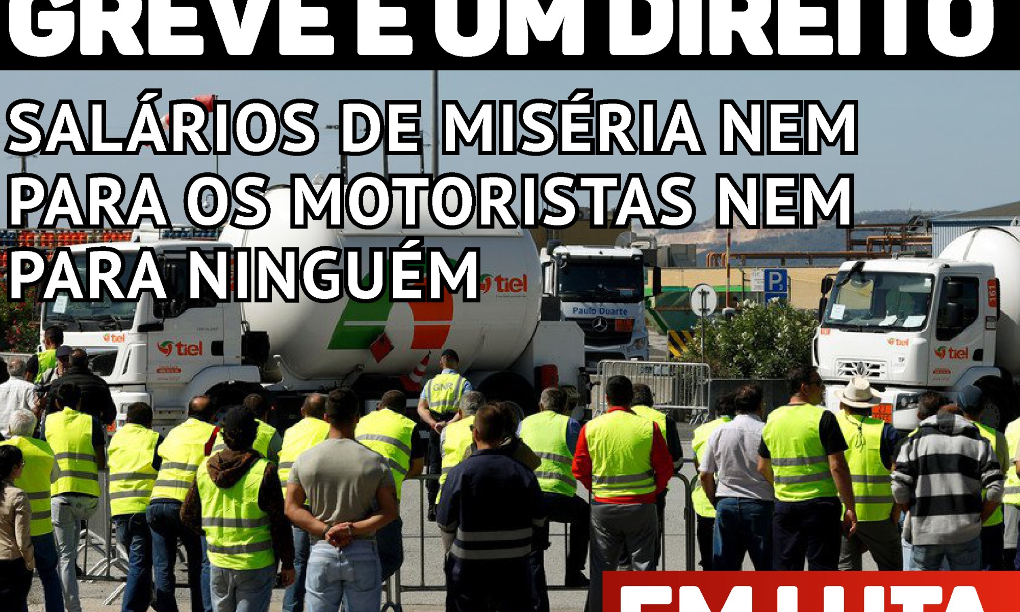Serviços máximos? Requisição civil? Intimidação judicial? GNR e PSP a substituir grevistas? Já basta de repressão e autoritarismo!!! O Governo não está a permitir o direito básico à greve, que é a única arma dos trabalhadores contra as imposições dos patrões! O Governo quer apenas calar os motoristas e acabar com a greve através da repressão. Toma o lado daqueles que fogem aos impostos num valor anual global de 300 milhões de euros no setor de transportes, enquanto que para os trabalhadores é requisição civil por não fazerem horas extra durante a greve e, em última instância, lutarem por um salário base minimamente decente.