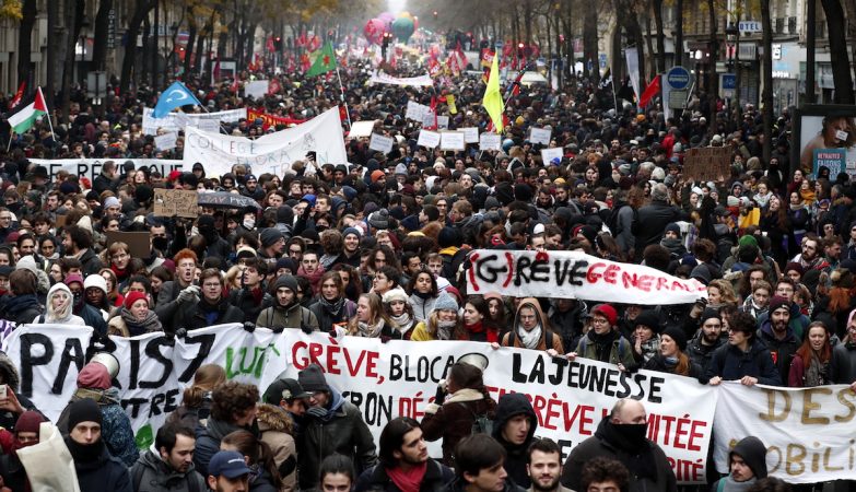A nível sindical, deixámos de lado os traidores abertos e tradicionais das centrais CFDT e UNSA. Formou-se uma intersindical “de oposição” ao projeto de reforma composta pela CGT, FO, CFE-CGC (executivos), Solidaires, UNEF (estudantes), MNL e UNL (estudantes de ensino secundário), que se reuniram várias vezes antes de 5/12 e acabaram por chamar a um dia de greve geral interprofissional nesse mesmo dia, sem dizer nada sobre a continuidade da greve.
