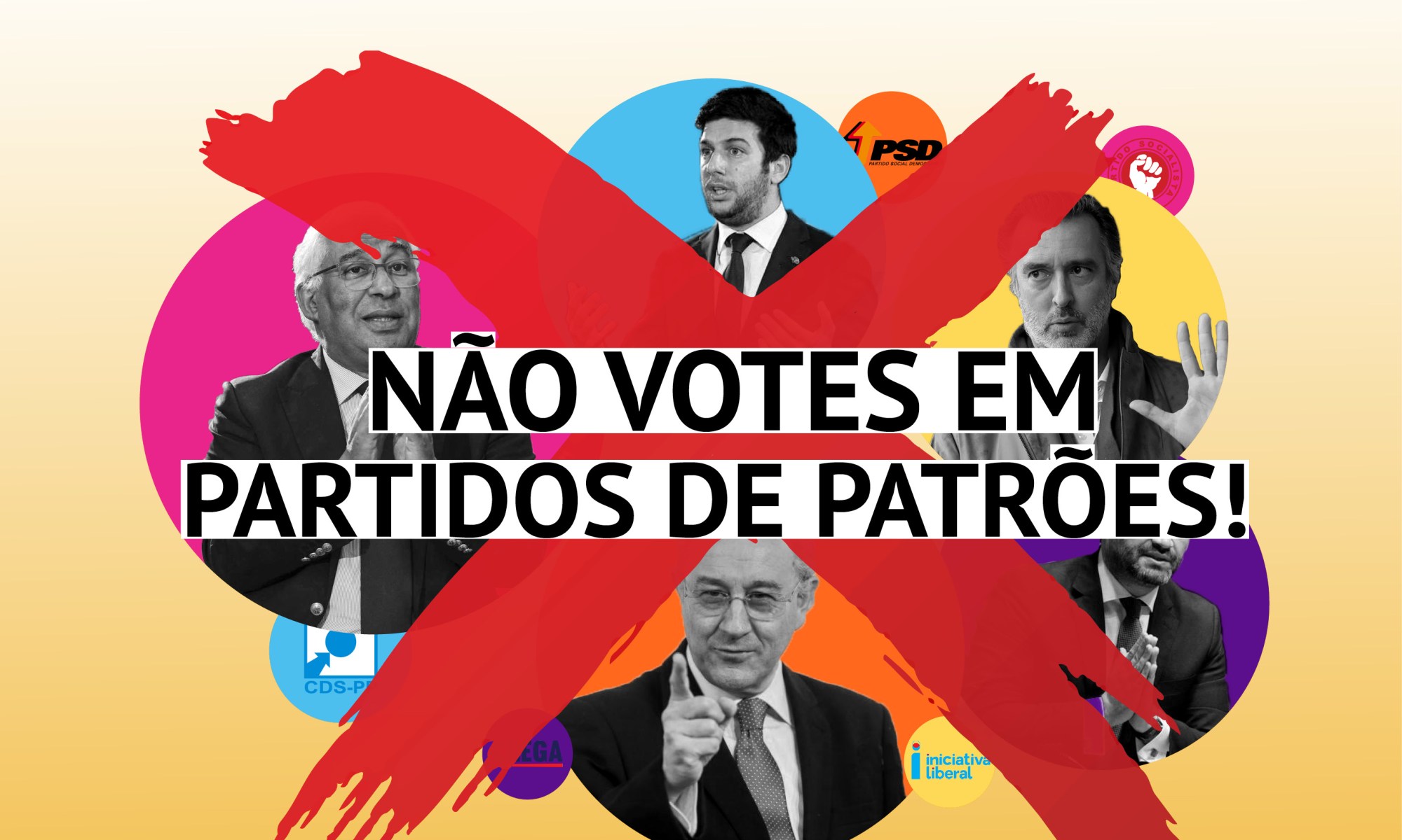 Nestas eleições, os partidos dos patrões – PSD e PS e seus satélites (CDS, Chega, IL) – preparam-se para mais ataques aos direitos dos trabalhadores. Por isso chamamos a não votarmos nos partidos dos patrões. Votemos criticamente no BE, PCP ou MAS para não fortalecer os planos neoliberais submissos ao poder de Bruxelas. No entanto, votar não basta. BE e PCP não tiraram as verdadeiras lições do que foi o governo da Geringonça, que salvou o PS e seguiu com a venda e destruição do país, e agora apontam como nova solução uma nova Geringonça, sem questionarem o projeto de país dentro da EU.