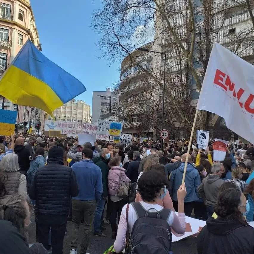 A grande manifestação de protesto contra a invasão da Ucrânia pela Rússia, realizada no domingo, 27 de fevereiro, em Lisboa, teve dois episódios a lamentar. Num deles, quatro indivíduos, dois deles portugueses e os demais supostamente ucranianos, agrediram fisicamente uma ativista da organização Em Luta e arrancaram violentamente os panfletos que distribuía, junto com seus companheiros. Durante o conflito, os agressores justificaram a sua atitude proclamando, aos gritos, que os panfletos distribuídos apoiariam a Rússia e a invasão da Ucrânia, uma afirmação facilmente desmentida até pelo título do panfleto: “Pela derrota da invasão militar russa à Ucrânia”.