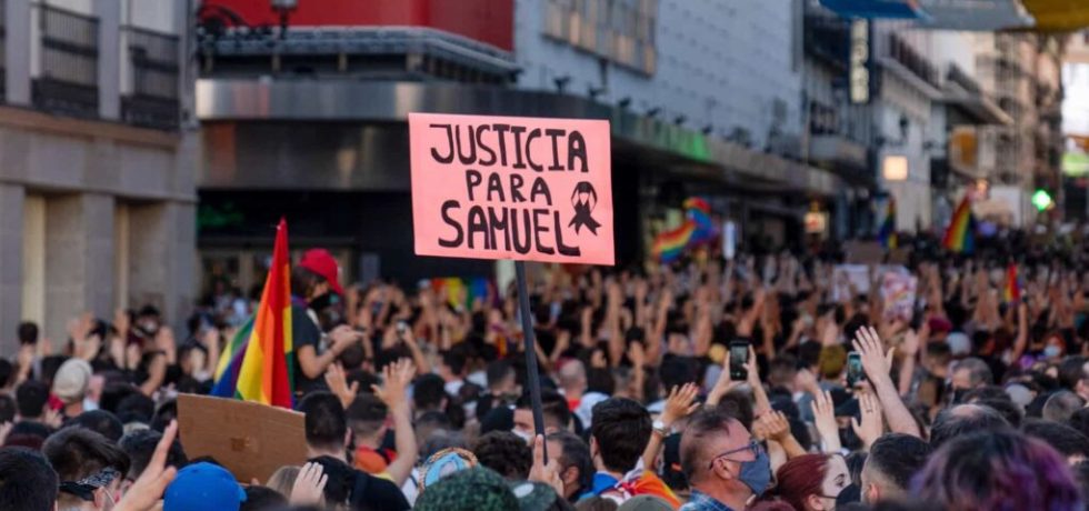 Na madrugada de sexta-feira, 2 de julho, Samuel, um jovem trabalhador de 24 anos, foi espancado até à morte por 12 homens ao grito de “maricas” em La Coruña. Este crime de ódio indignou grande parte da juventude de todo o Estado que logo após o dia do Orgulho LGTBI, não esperou para responder manifestando-se massivamente nas principais cidades do território. Nelas pudemos escutar gritos carregados de raiva como “Fora fascistas de nossos bairros!” e “Abascal é um criminoso!”