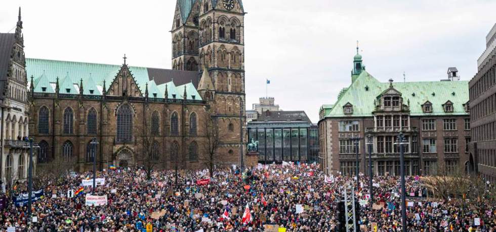 Durante o fim de semana de 20 e 21 de janeiro ocorreram concentrações em massa contra a direita em muitas cidades da Alemanha. Em Bremen estima-se a participação de cerca de 45.000 pessoas, em Hannover cerca de 35.000 e números semelhantes em várias cidades mais, como Berlim ou Hamburgo.